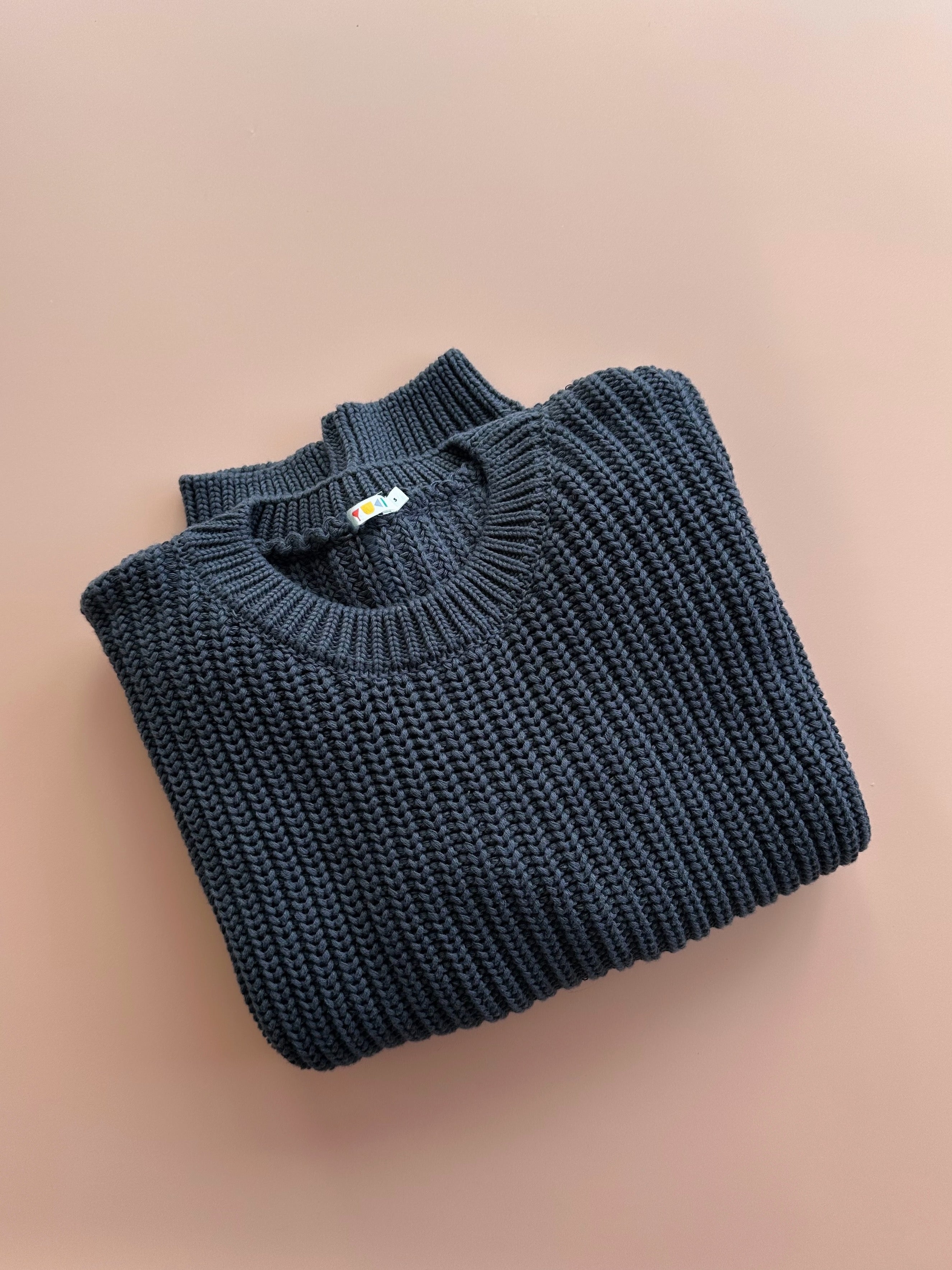 The chunky knitted sweater from Yuki is made with 100% organic cotton and yarns that are Gots and Oekotex® certified. It has an oversized design for a casual, fashionable look. Perfect to twin with your kids! Yuki offers a minimalistic high-quality collection for those who believe in slow fashion. Fairly made in Portugal.